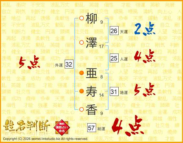 柳澤亜寿香さんの総運は57画の4点!