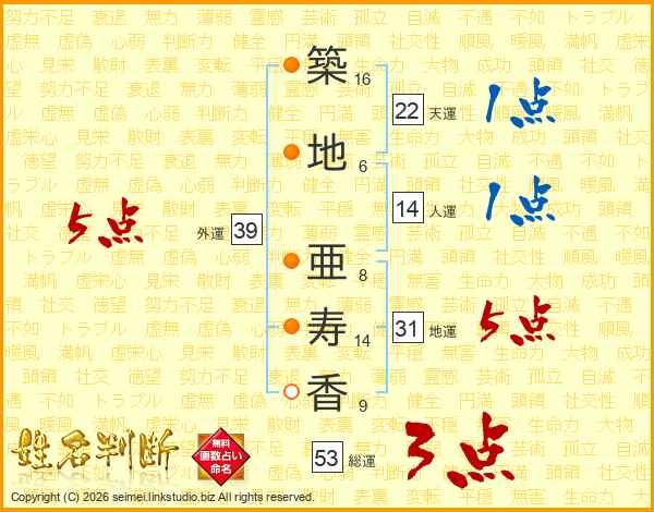 築地亜寿香さんの総運は53画の3点!