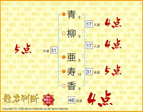青柳亜寿香さんの総運は48画の4点!