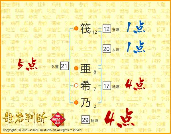 筏(12画) 亜(8画)希(7画)乃(2画)