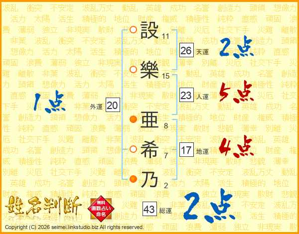 設樂亜希乃さんの総運は43画の2点!