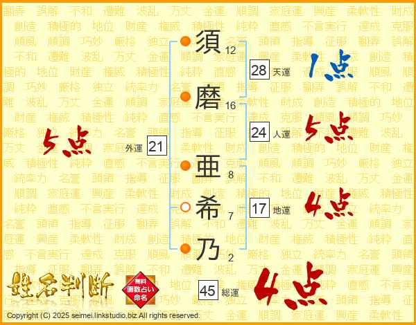 須磨亜希乃さんの総運は45画の4点!