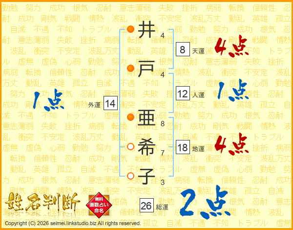 井(4画)戸(4画) 亜(8画)希(7画)子(3画)