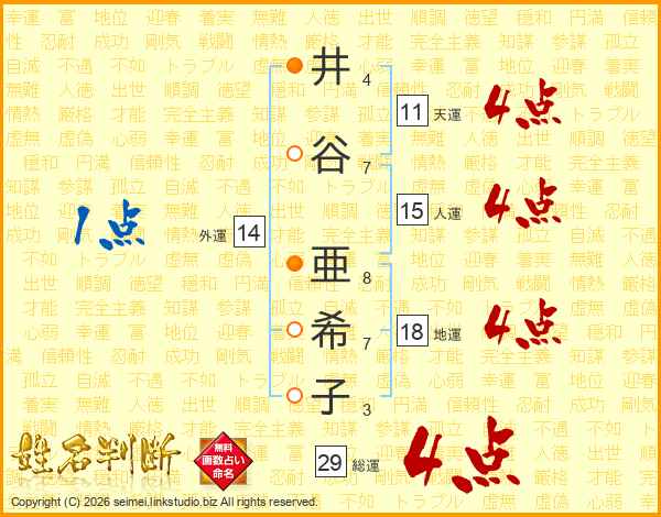 井谷亜希子さんの総運は29画の4点!