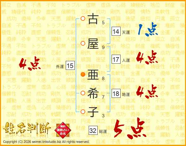 古屋亜希子さんの総運は32画の5点!