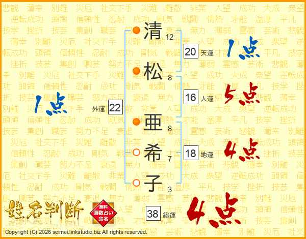 清松亜希子さんの総運は38画の4点!