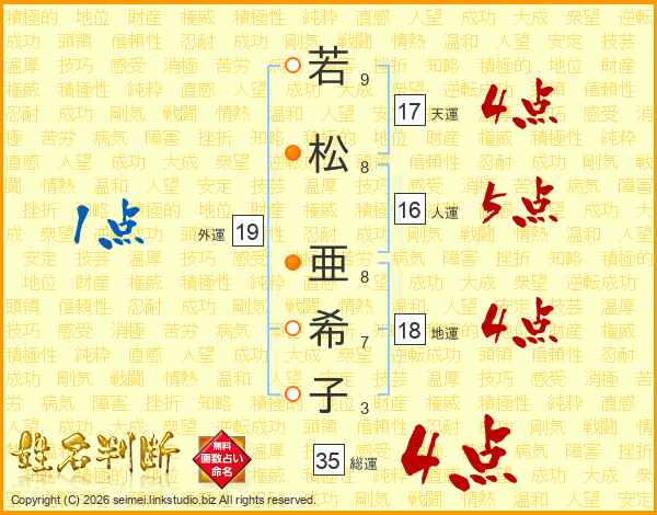 若松亜希子さんの天運は17画の4点!