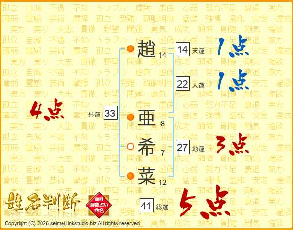 趙亜希菜さんの総運は41画の5点!