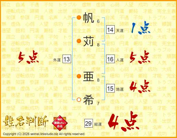帆(6画)苅(8画) 亜(8画)希(7画)