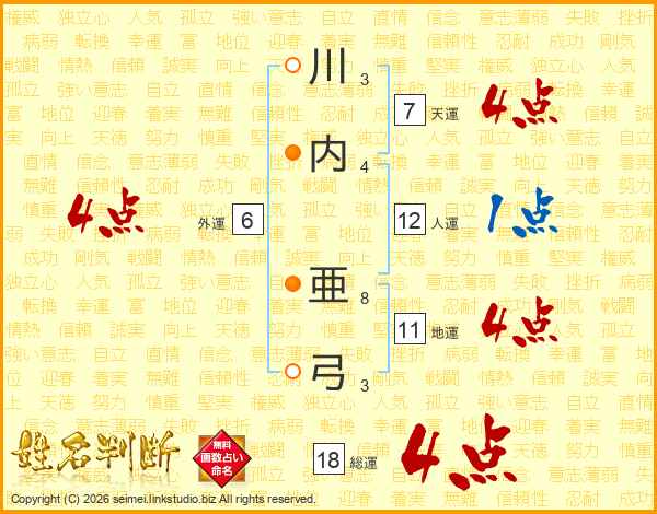 川内亜弓さんの天運は7画の4点!