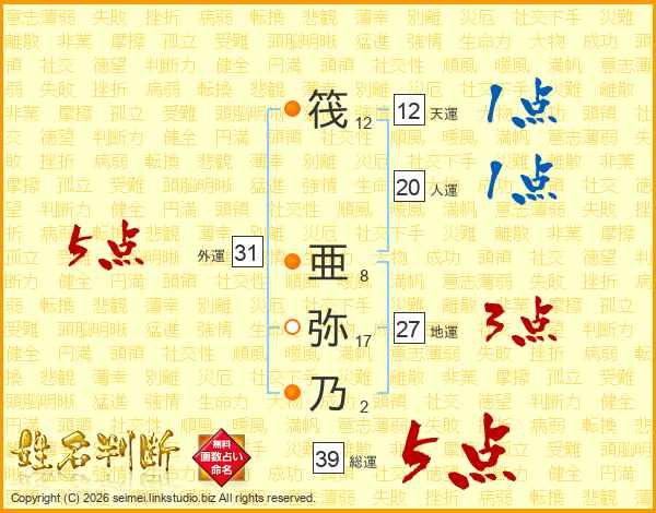 筏亜弥乃さんの総運は39画の5点!