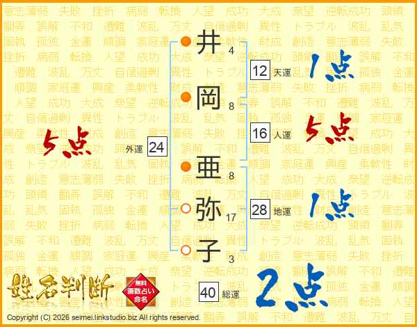 井岡亜弥子さんの総運は40画の2点!