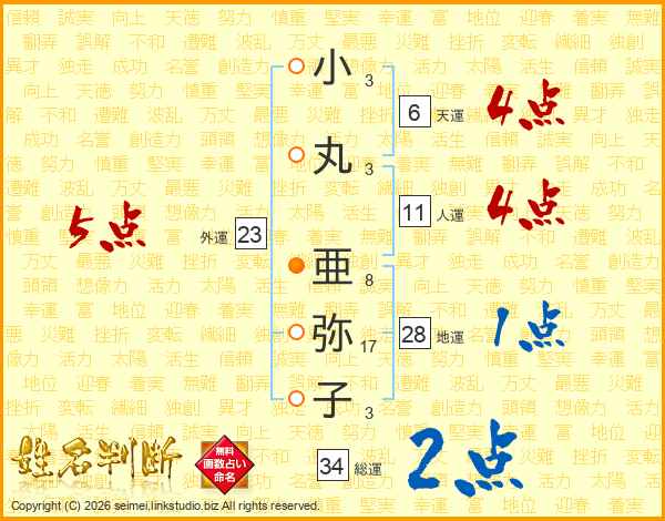 小丸亜弥子さんの総運は34画の2点!