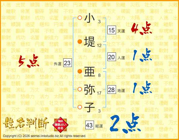 小堤亜弥子さんの外運は23画の5点!