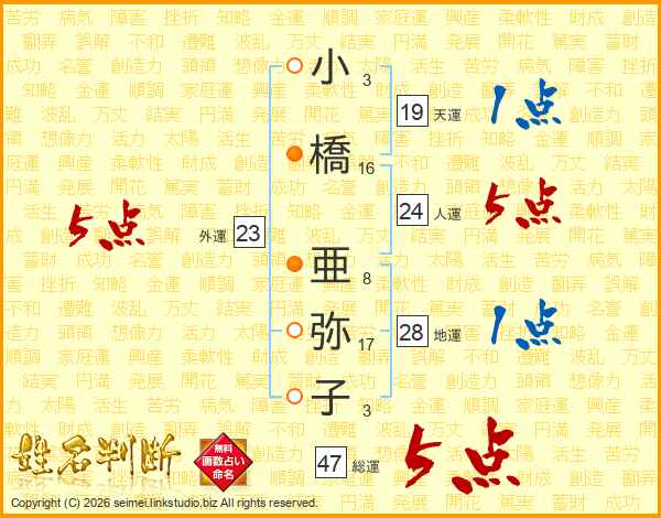 小橋亜弥子さんの総運は47画の5点!