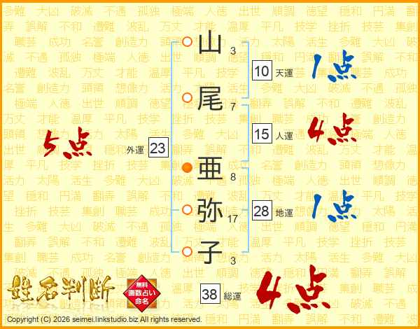 山尾亜弥子さんの総運は38画の4点!