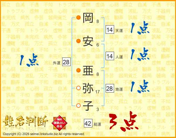 岡安亜弥子さんの総運は42画の3点!