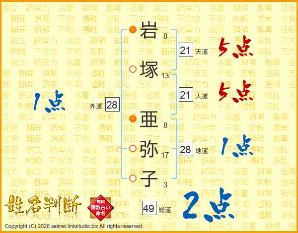 岩塚亜弥子さんの総運は49画の2点!