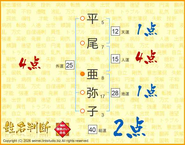 平尾亜弥子さんの総運は40画の2点!