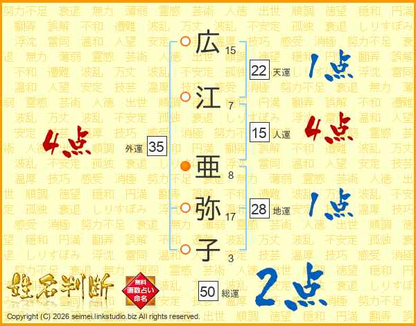 広江亜弥子さんの総運は50画の2点!