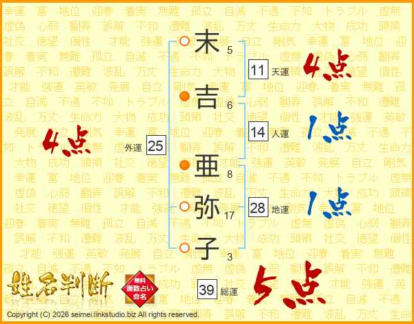 末吉亜弥子さんの総運は39画の5点!