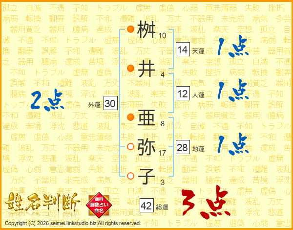 桝(10画)井(4画) 亜(8画)弥(17画)子(3画)