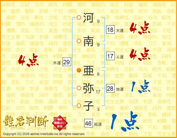 河南亜弥子さんの総運は46画の1点!