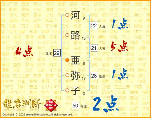 河路亜弥子さんの総運は50画の2点!
