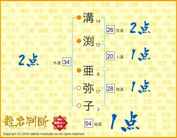 溝渕亜弥子さんの天運は26画の2点!