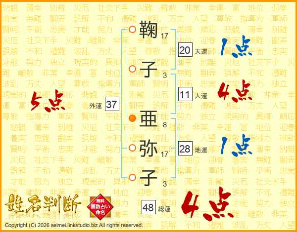 鞠子亜弥子さんの外運は37画の5点!