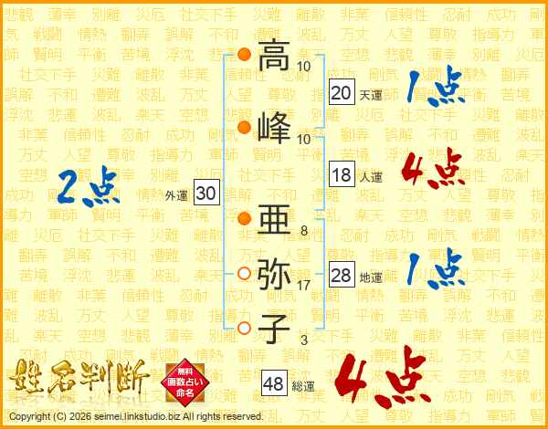 高(10画)峰(10画) 亜(8画)弥(17画)子(3画)