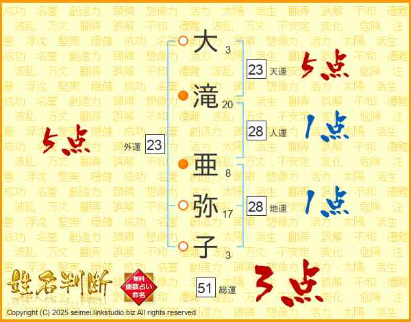 大滝亜弥子さんの総運は51画の3点!