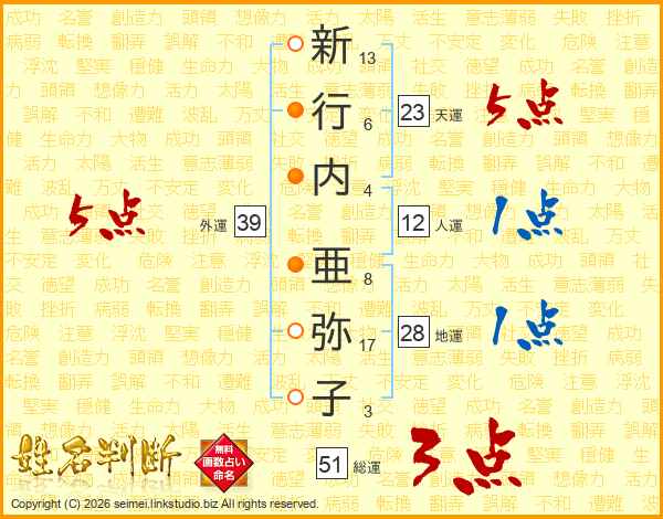 新行内亜弥子さんの総運は51画の3点!