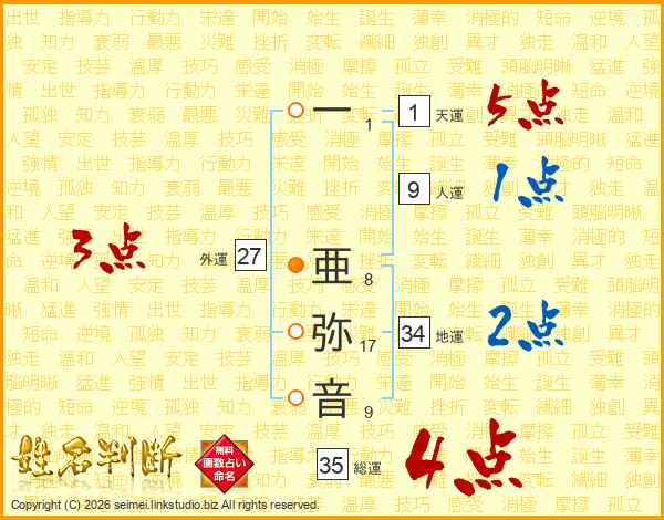 一亜弥音さんの総運は35画の4点!