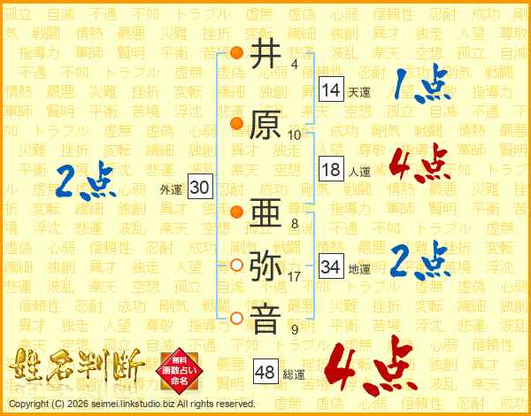 井原亜弥音さんの総運は48画の4点!
