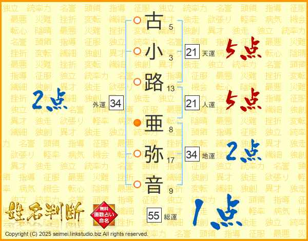 古小路亜弥音さんの天運は21画の5点!
