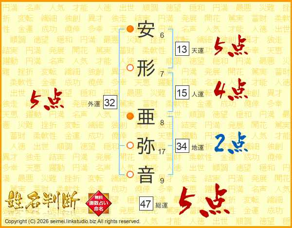 安形亜弥音さんの総運は47画の5点!