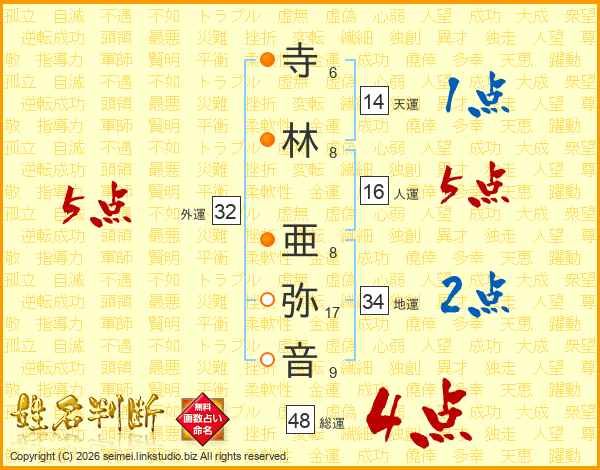 寺林亜弥音さんの総運は48画の4点!