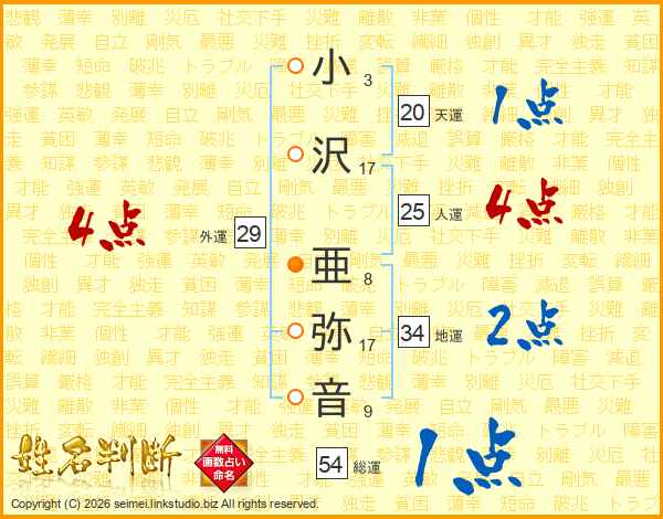 小沢亜弥音さんの総運は54画の1点!