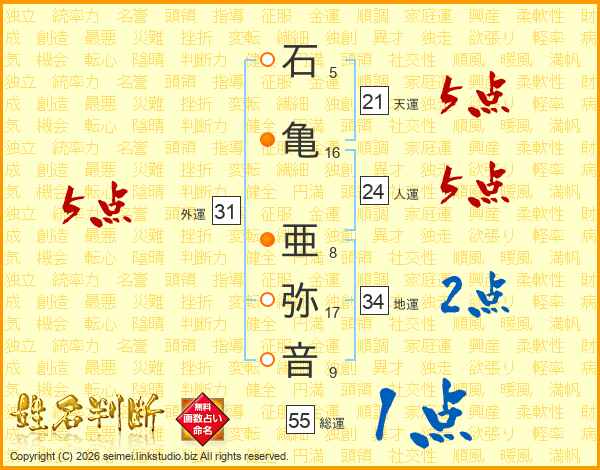 石亀亜弥音さんの総運は55画の1点!