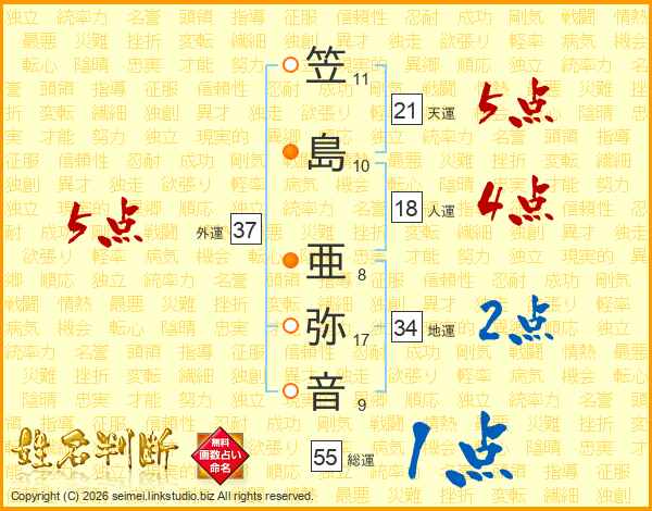 笠島亜弥音さんの天運は21画の5点!