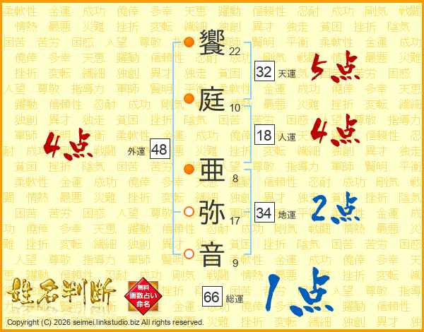 饗庭亜弥音さんの総運は66画の1点!