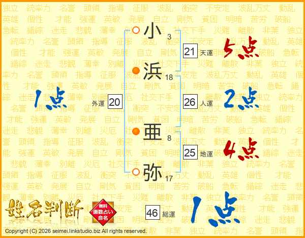 小浜亜弥さんの総運は46画の1点!
