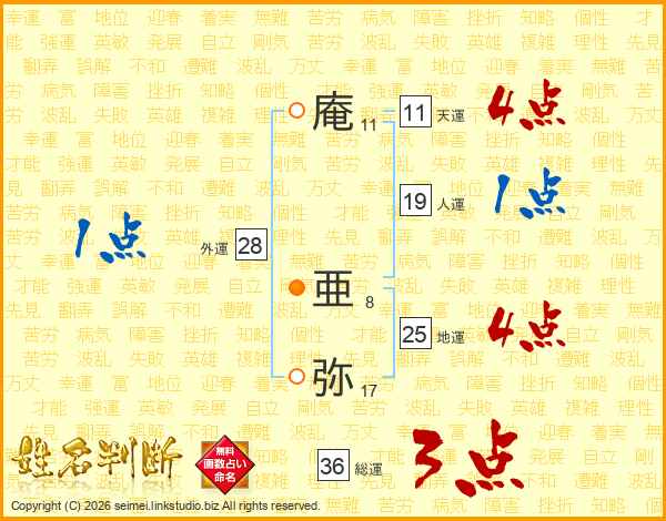 庵(11画) 亜(8画)弥(17画)