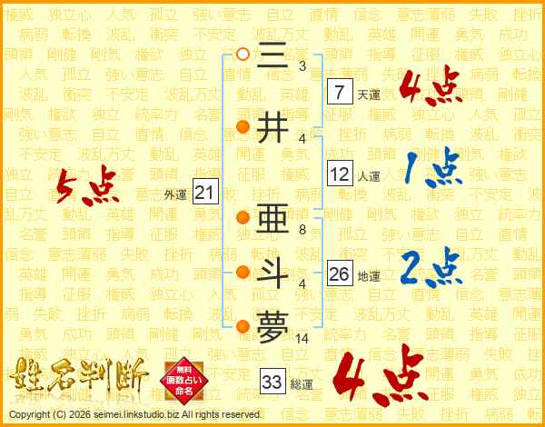 三井亜斗夢さんの総運は33画の4点!