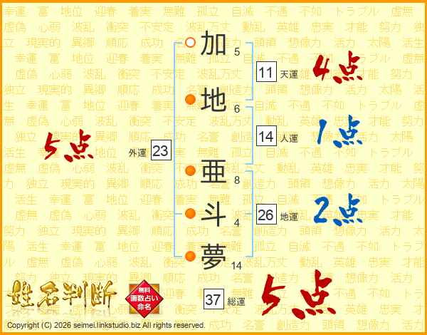加地亜斗夢さんの総運は37画の5点!