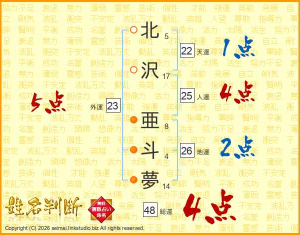 北沢亜斗夢さんの地運は26画の2点!