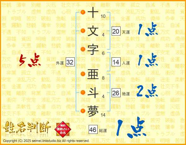 十文字亜斗夢さんの総運は46画の1点!
