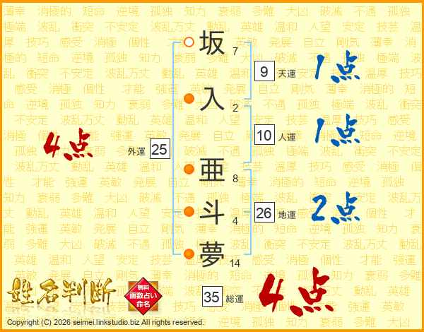 坂入亜斗夢さんの地運は26画の2点!