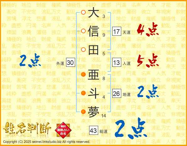 大信田亜斗夢さんの天運は17画の4点!